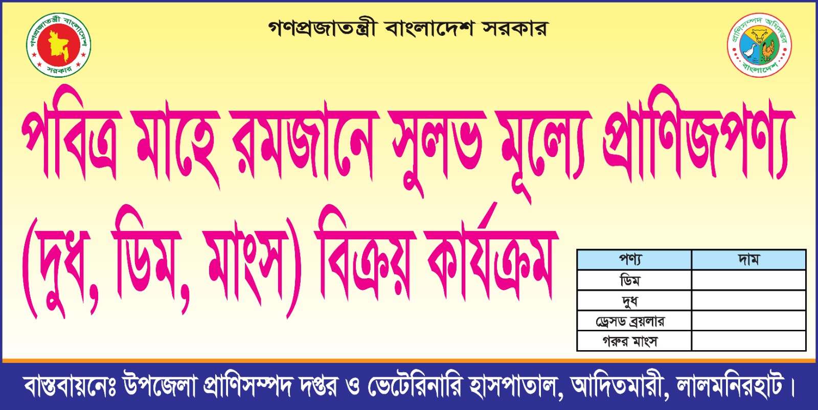 পবিত্র মাহে রমজানে সুলভ মূল্যে প্রাণিজপণ্য (দুধ, ডিম, মাংস) বিক্রয় কার্যক্রম